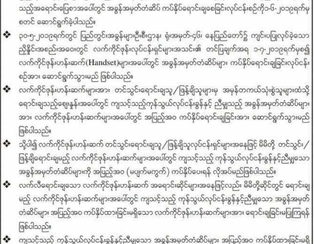 ဇူလိုင် ၁ ရက်မှ စတင်ပြီး ဟန်းဆက်ဘူးခွံများပေါ်တွင် အခွန်အမှတ်တံဆိပ် ကပ်နှိပ်ရောင်းချရမည်SOCIAL