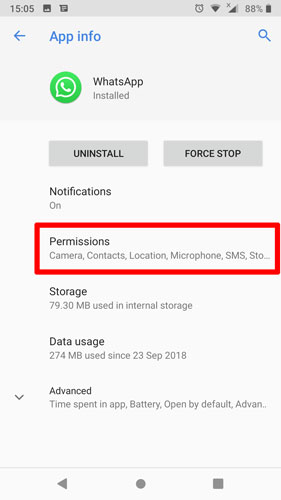 မိမိပိတ်ချင်တဲ့ App ရဲ့ Permissions ကိုကြည့်ဖို့အတွက် Settings -> Apps & notifications -> [App name] -> Permissions ဆိုတာကို ရှာနှိပ်ပါ။