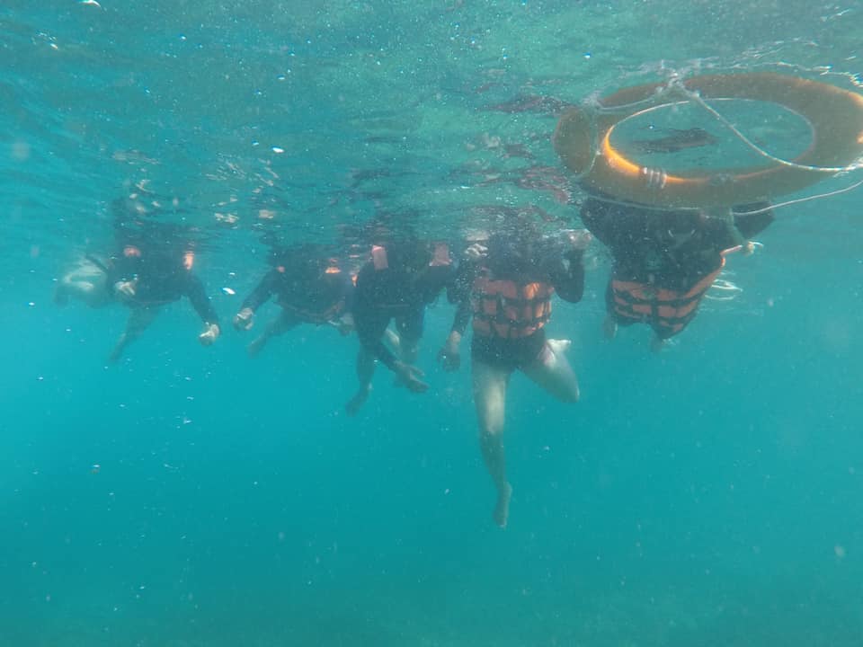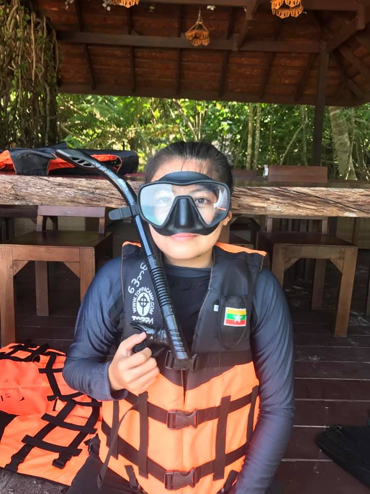Snorkellingလုပ်ရင် မသွားခင်သူတို့ကမ်းခြေမှာtrainingပေးပါတယ်။ရေမကူးတတ်တဲ့သူတွေကိုလည်းငုပ်နည်းသေချာလေးကိုသင်ပေးတာ။ကိုယ်ဆိုရေမကူးတတ်ဘူး ဒါမယ့် ဘောကွင်းလေးကိုင်ပီးငုပ်တာ အရမ်းအဆင်ပြေတယ်။ရေအောက်ကအလှတွေဆိုတာလှချက် ကိုယ်ဆိုခေါင်းတောင်မဖော်ဘူး ငုပ်တာငုပ်တာဆိုတာလေ😂😂