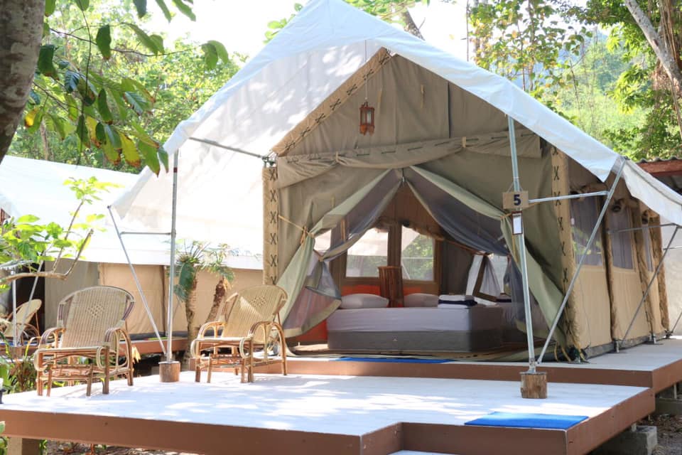 Tent ဆိုပေမယ့် အိမ်သာ၊ရေချိုးခန်းအကုန်တွဲရက်ပါတယ်။အဲကွန်းတော့မရှိဘူး၊air coolerထားပေးထားတယ် ၊မှန်တင်ခုံတွေဘာတွေနဲ့ပြည့်ပြည့်စုံစုံပါပဲ။ကျေးငှက်အသံတွေနဲ့တောထဲမှာအိပ်နေရသလိုပဲ။ကိုယ်တော့tentမှာတည်းရတာပိုသဘောကျတယ် ပင်လယ်မြင်ကွင်းနဲ့ဘန်ဂလိုတို့ဘာတို့ကချောင်းသာတို့မောင်းမကန်တို့မှာတည်းလည်းရတာပဲလေ။အဲလိုtentနဲ့ပြည့်ပြည့်စုံစုံတောထဲအိပ်ရတာမျိုးကသိပ်မရှိဘူးလေ။လူကြီးတွေ မိသားစုတွေနဲ့သွားရင်တော့ ဘန်ဂလိုတို့ villaတို့ကပိုအဆင်ပြေပါတယ်။
