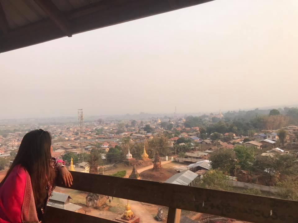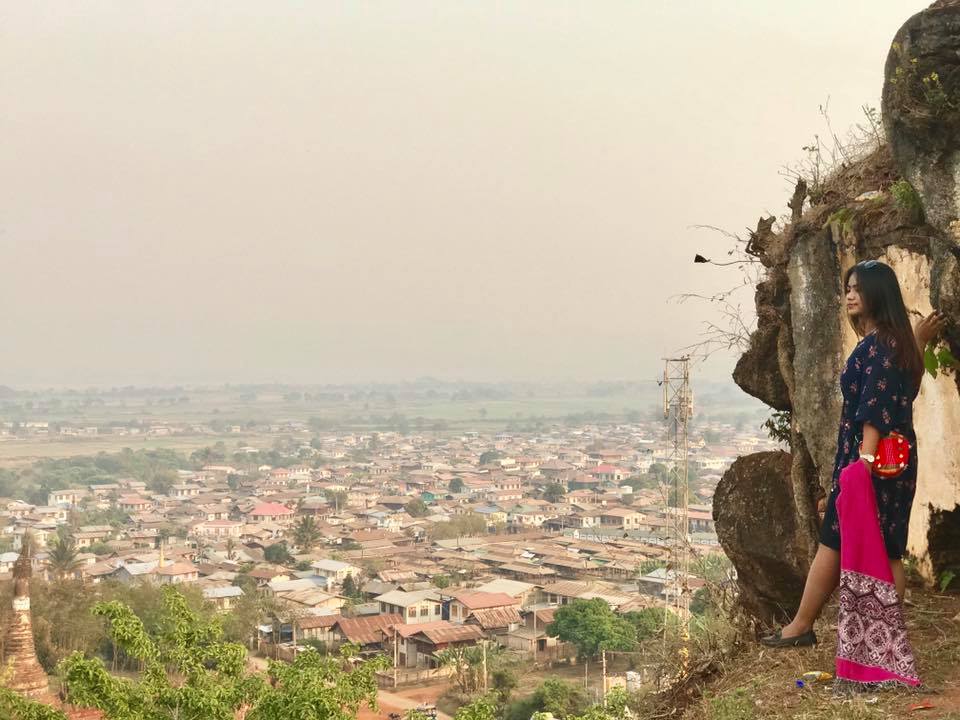 ဒေဝီ၁၂ ပါးဂူတောင်ထိပ်မှ မြင်ရသော မိုးနဲမြို့လေး