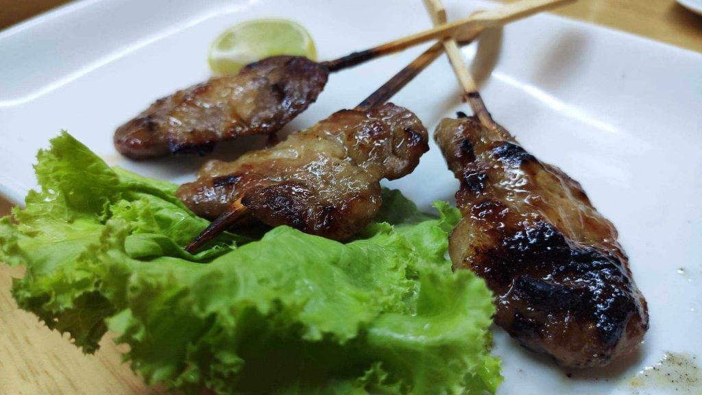 နောက်ထပ်အကြိုက်တွေ့တာက ဝက်ဆာတေး။ တစ်ပွဲမှာ ဆာတေး ၃ခုပါပြီး စျေးက ၂၇၀၀ကျပ်။ ဆာတေးအရသာက ချိုပြီးမွှေးနေတယ်။ အချဉ်ရည်ကလည်း အချဉ်နဲ့အစပ် ရောစပ်ထားတာ တော်တော်ကောင်းတယ်။ လူတစ်ယောက် ဆာတေးတစ်ပွဲအနေတော်ပဲ။