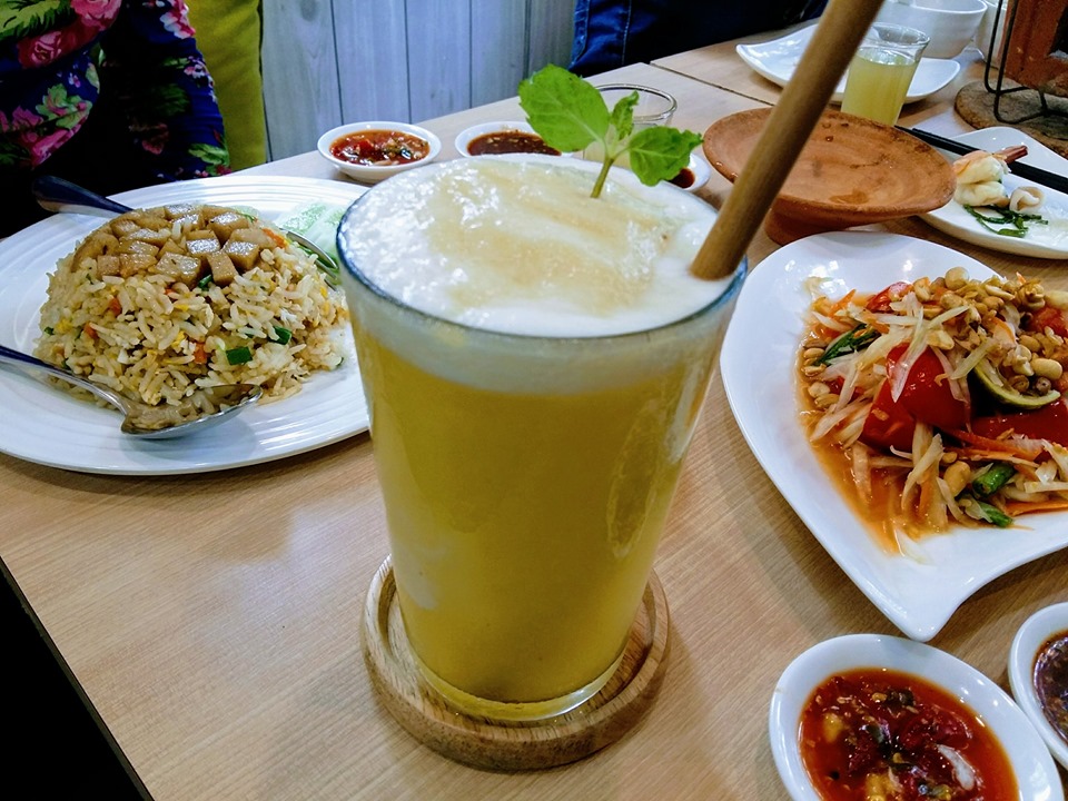 နာနတ်သီးဖျော်ရည်ကလည်း တော်တော်ကောင်းပါတယ် ဆိုင်မှာ ခုလောလောဆယ်တော့ အသီးအနှံဖျော်ရည်တွေ သိပ်မရနိုင်ပါဘူး Thai Teaတွေကတော့ တော်တော်စုံစုံရပါတယ်