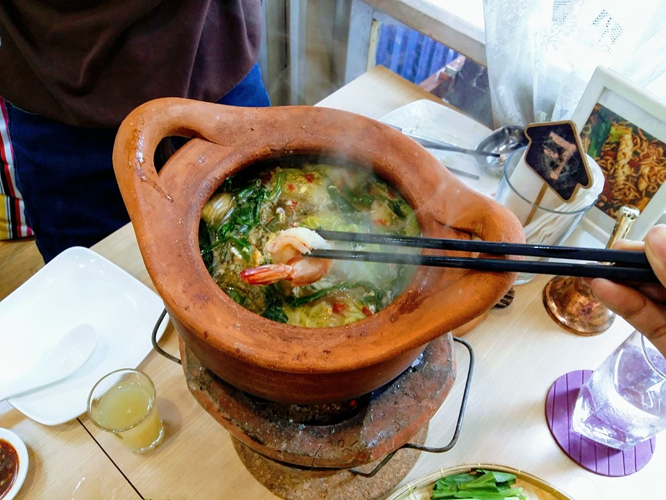 တခြားအသား 7500နဲ့ Seafood 9000 ပါ Sea food ပဲမှာလိုက်တယ် အသားပါလာတာကတော့ နည်းပါတယ်😌 အရွက်လေးတွေစုံသလို မွှေးမွှေးကြိုင်ကြိုင်လေးနဲ့ တော်တော် သောက်ကောင်းတယ် မီးသွေးနဲ့ မြေအိုးလေးနဲ့ဆိုတော့ အရသာတွေက ပိုကောင်းတယ် မှတ်တယ်